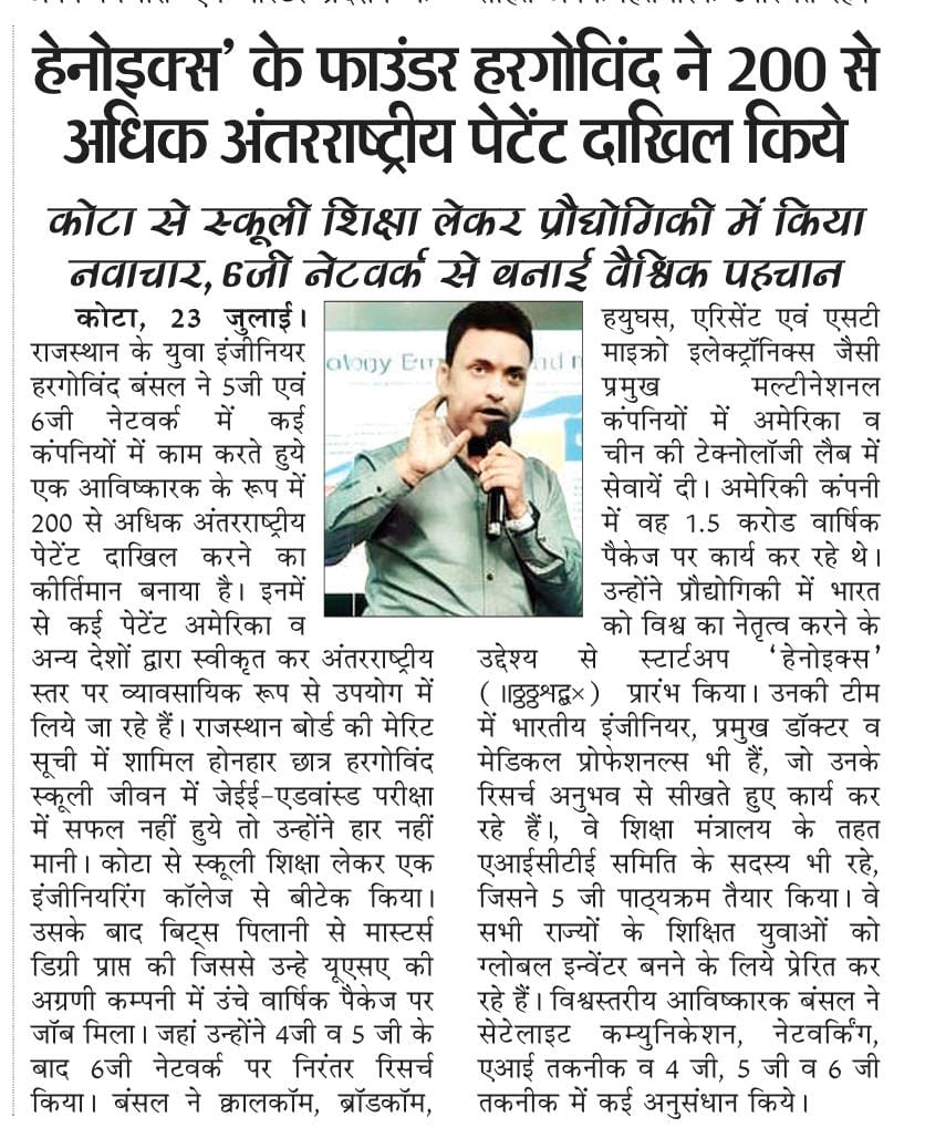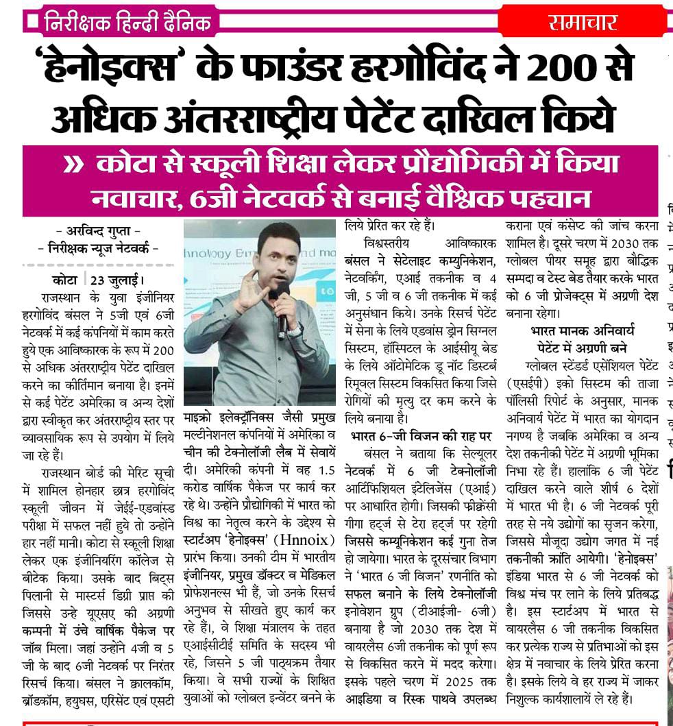 News Web New Delhi https://newswave.co.in/india/hnnoix-ceo-got-200-international-patents-in-6g-network.html