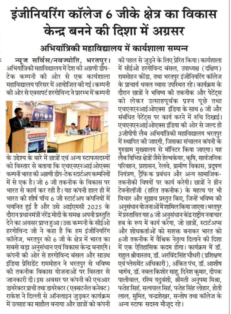 5G Advance Technology deployment session at Women Technical College, Rajasthan.